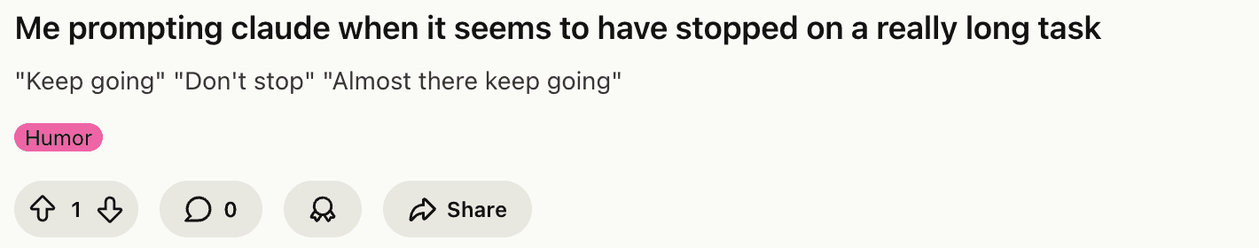 What is an issue though is the continuity of execution: despite the model creating it’s own plan of tasks, Claude tends to do one or more subsets of the plan and then it just… Stops? It’ll complete some things and then just say at the end something like: